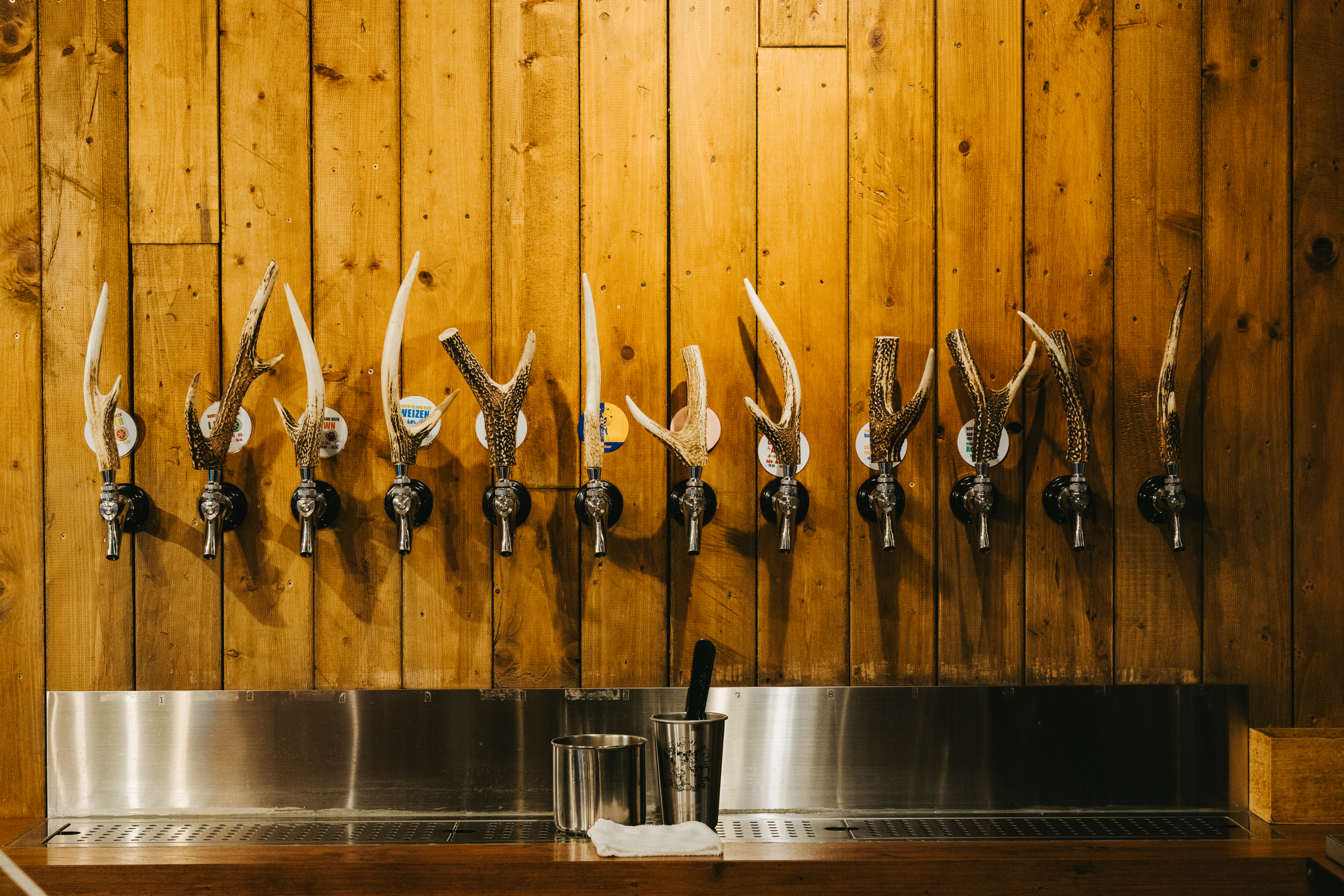 大通公園からも近いビルの10階にある、ビール好きの聖地。札幌の夜景を眺めながら、鹿の角のビアタップから注がれる樽生ビールを楽しめます。定番5種類に加えて季節限定も含め、最大12種類が飲める贅沢な空間です。
